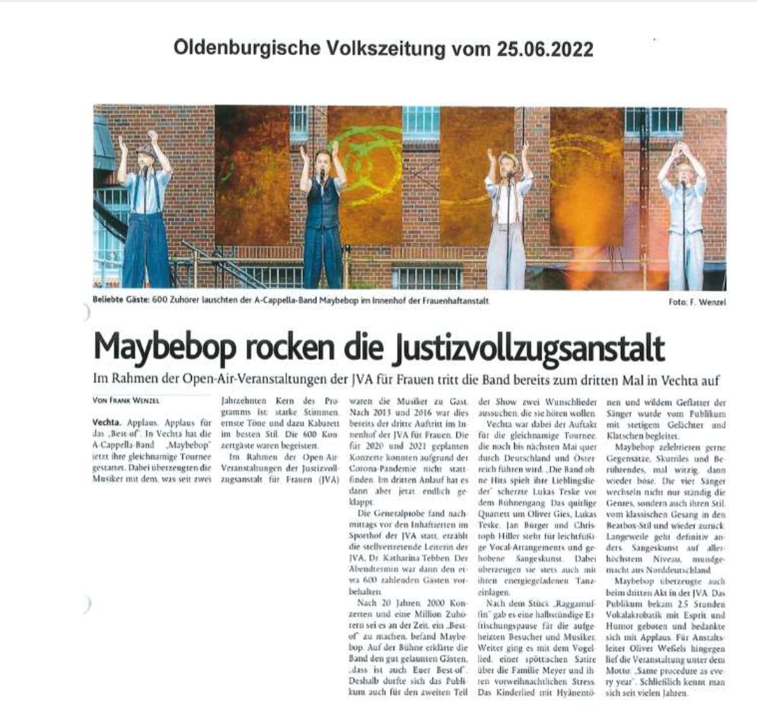 Die JVA für Frauen steht der Stadt Vechta auch zukünftig gerne als Kooperationspartner zur Verfügung, unterstreicht diese Veranstaltungsreihe doch das gute Miteinander zwischen Stadt und JVA in besonderer Weise.