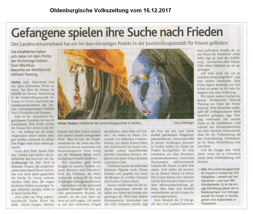 Besonders ist nun die für die JEDERMANN-Inszenierung 2020 geplante neue Kooperation mit der Justizvollzugsanstalt für Frauen (JVAfF) in Vechta.